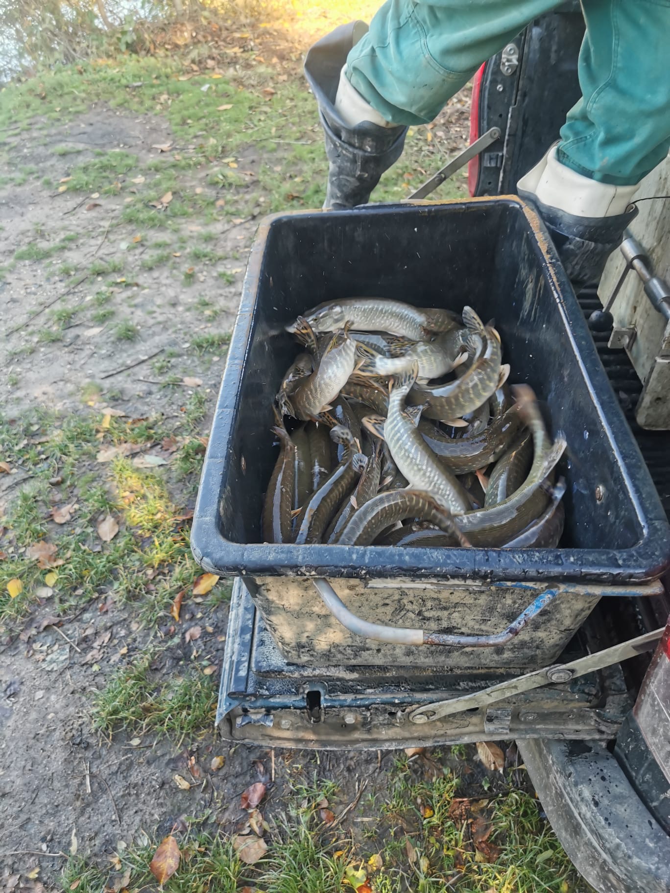Dňa 1.11.2023 prebehlo dorybnenie revírov MO SRZ ZLATÉ MORAVCE šťukou Š1-215 kg