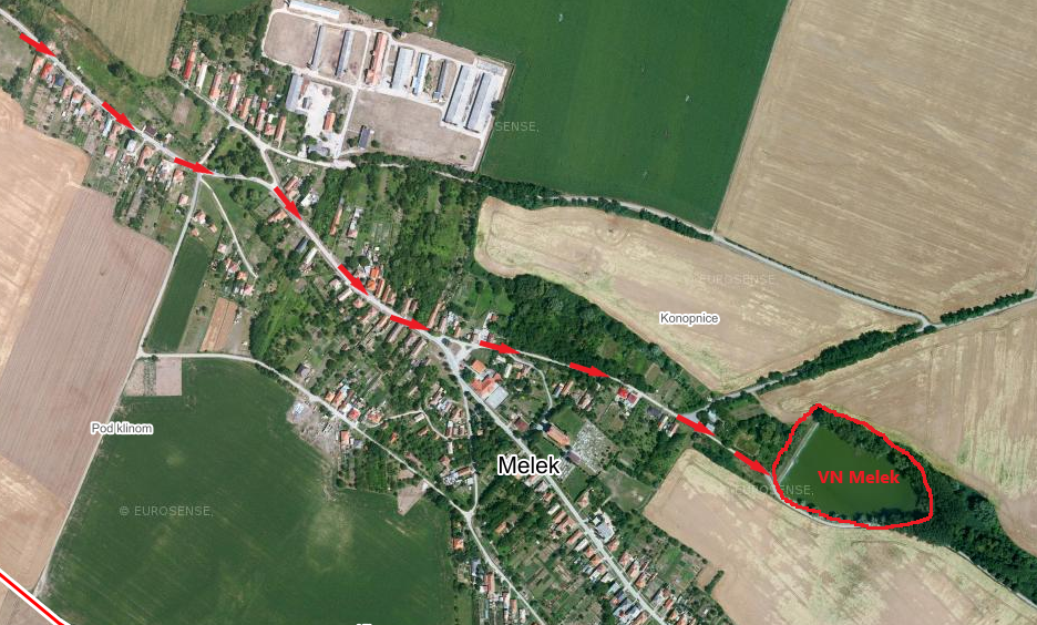 Vodná nádrž sa nachádza pri obci Melek. Rozloha je 2ha, dno je členité s hĺbkou 1,0 - 1,8m. Nachádzajú sa tu kapre, zubáče, amure, šťuky, sumce, karase, pleskáče.Na tomto revíry platí zväzové povolenie.